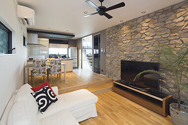 娘が生まれ、そろそろマイホームを建てたいと思い、大手ハウスメーカーを何件か見て回りましたが、なかなか予算内で納得のいく間取りを提示してくれる会社がない中、サートンホームさんは予算内で私達の想像以上のまどりを考えてくださり、私達のワガママな注文にも親身になって一緒に考えてくれ、結果、とても自慢できるマイホームを持つ事ができ、サートンホームさんにはとても感謝しております。花火大会の花火も社長が案を出してくださり、作ることができました。屋上からバーベキューを楽しみながらとても綺麗に見ることができました。また、ウッドデッキはとても広く、夏は毎日娘がプールをして楽しんでおります。アフター面でも、扉の調子が悪い時もすぐに社長が来てくださり、すばやい対応に感謝しております。何もわからない私たちにプランニングから竣工までとても丁寧に教えてくださり、とても信頼できる方達ばかりで安心して任せられる、そんなサートンホームさんで家を建てることができ、本当に良かったと思っております。